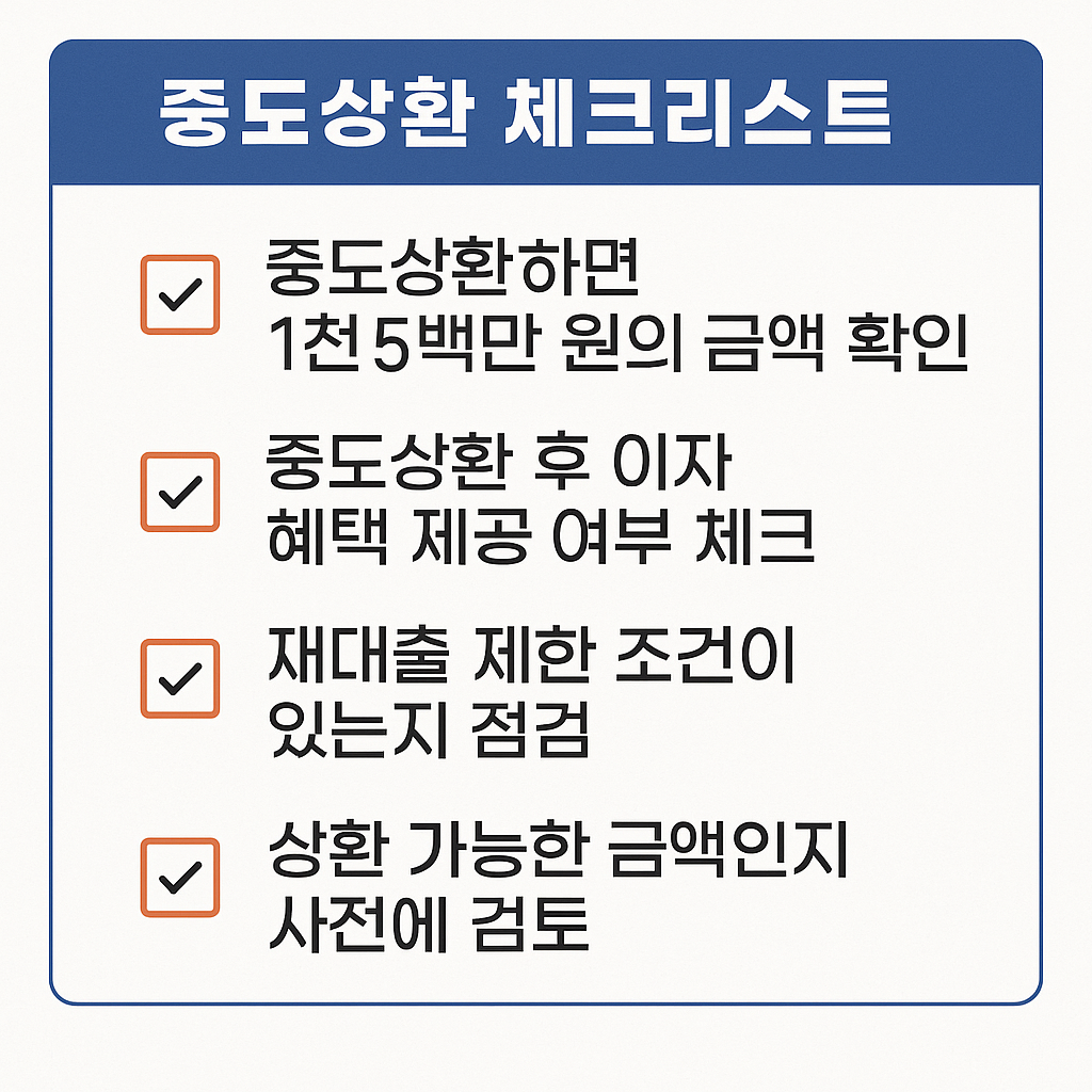 👉 즉, 중도상환은 시점이 빠를수록 절약 효과가 크며, 수수료 부담을 넘어서는 경우가 대부분입니다.