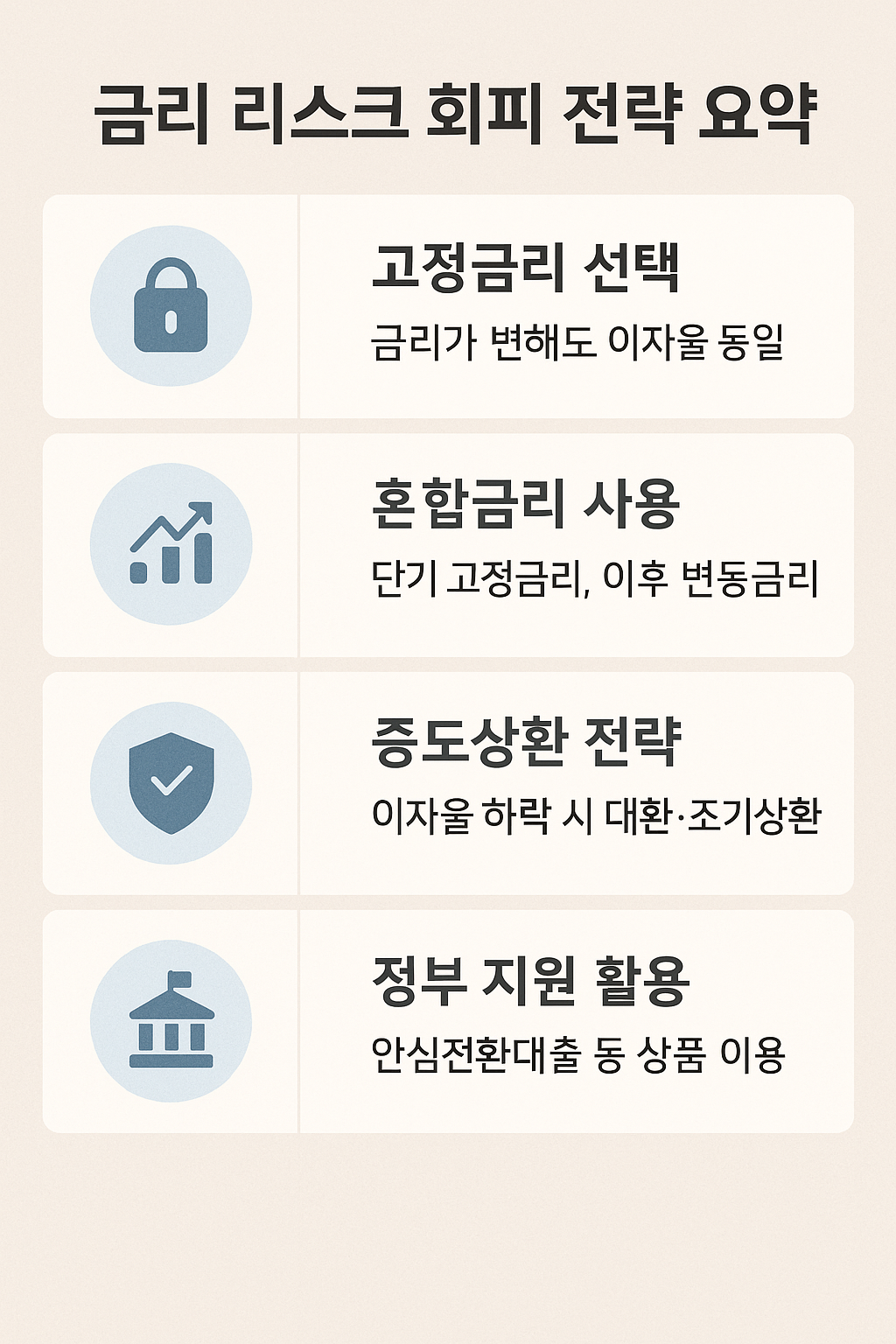 👉 단기적으로 금리 상승 위험을 막고, 중장기적으로는 하락 효과를 누릴 수 있는 전략입니다.