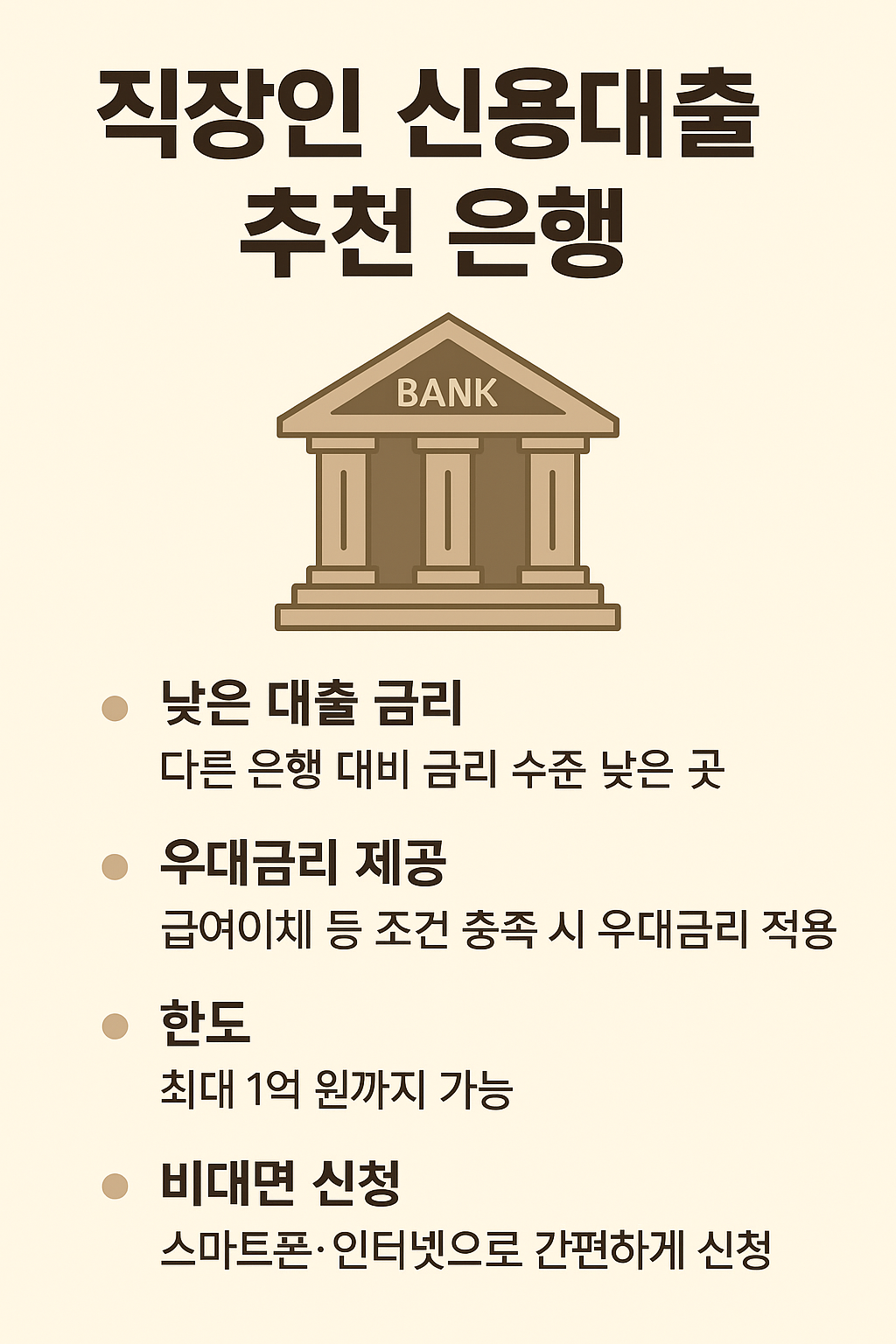 - 특징: 직장인 우대금리 제공, 모바일 간편 심사