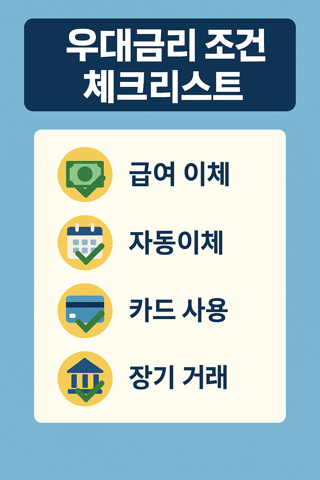 우대금리를 받기 위해선 다음과 같은 조건들을 충족해야 합니다.