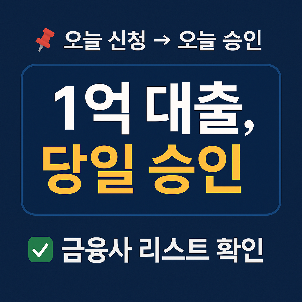 1억대출 당일 승인 가능한 금융사 리스트 (2025 최신판)