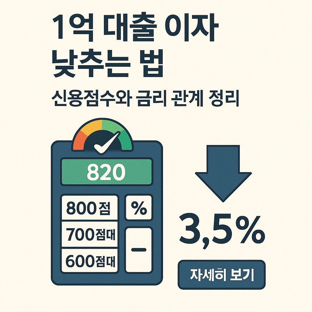 이 글에서는 1억 대출 이자 낮추는 법, 그리고 신용점수와 금리의 직접적인 관계를 정리합니다.