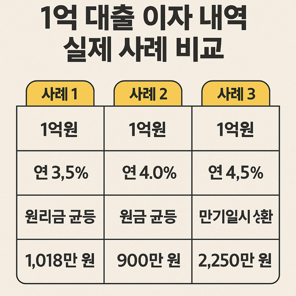 이번 글에서는 실제 사례 두 가지를 통해 1억 대출 이자 내역과 절감 방법을 생생하게 비교해보겠습니다.