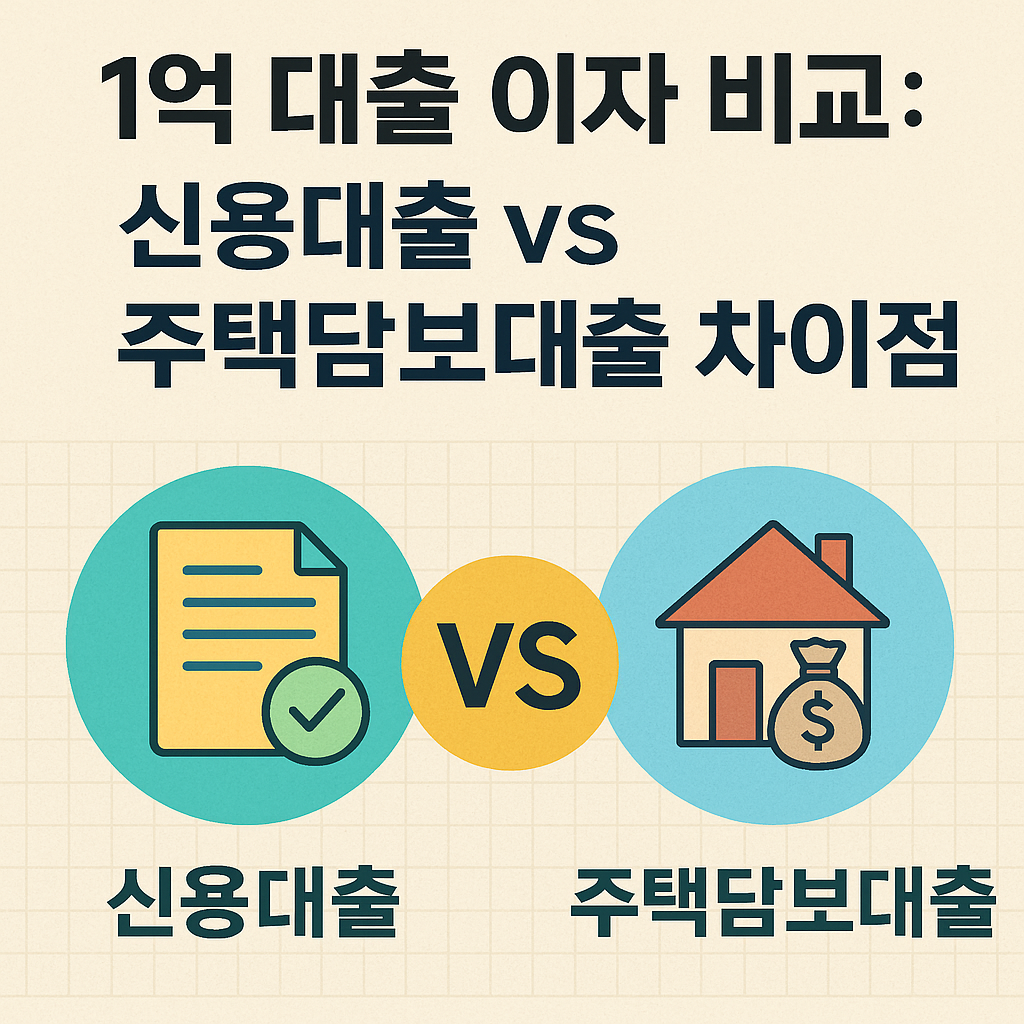 1억 원의 대출을 받을 때, 신용대출과 주택담보대출 중 어떤 방식이 이자 측면에서 더 유리할까요?