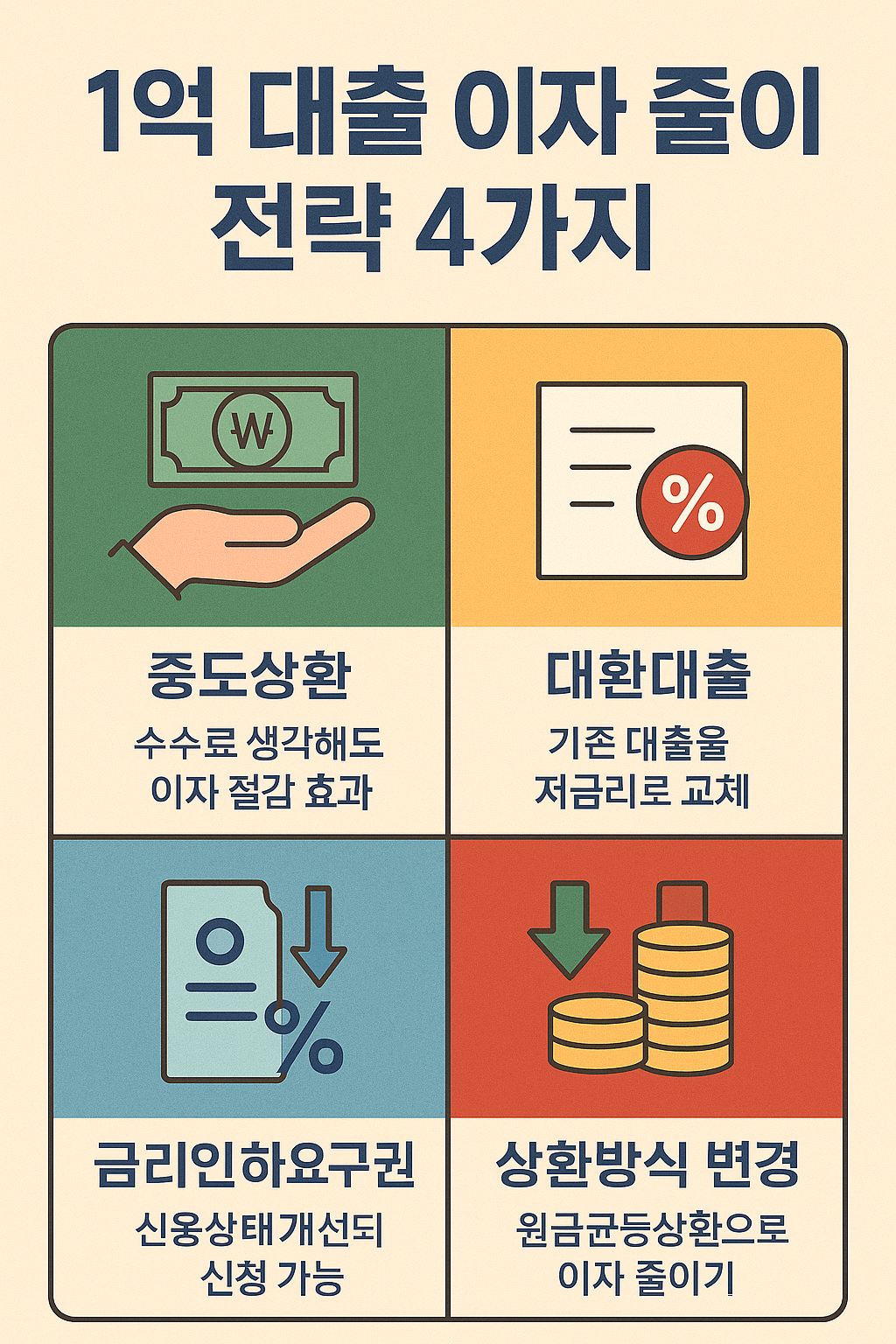 - 대환대출 + 중도상환 병행 시 이자 절감 효과 극대화