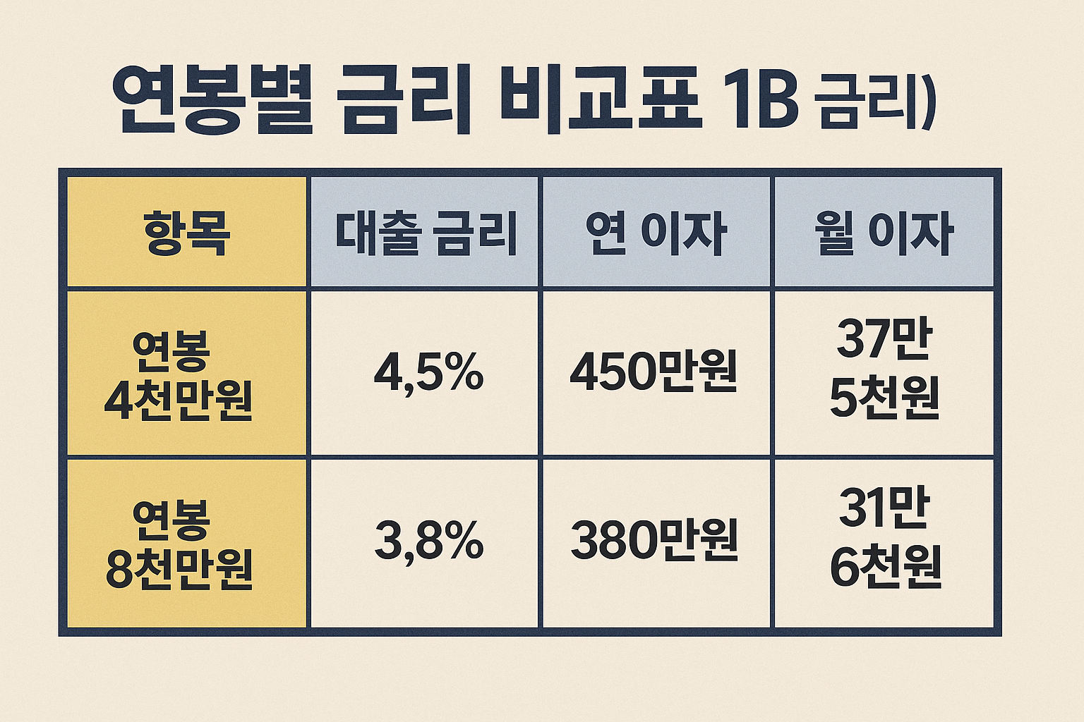 연봉 4천 vs 8천, 이자율 비교 (2025년 기준 예시)
