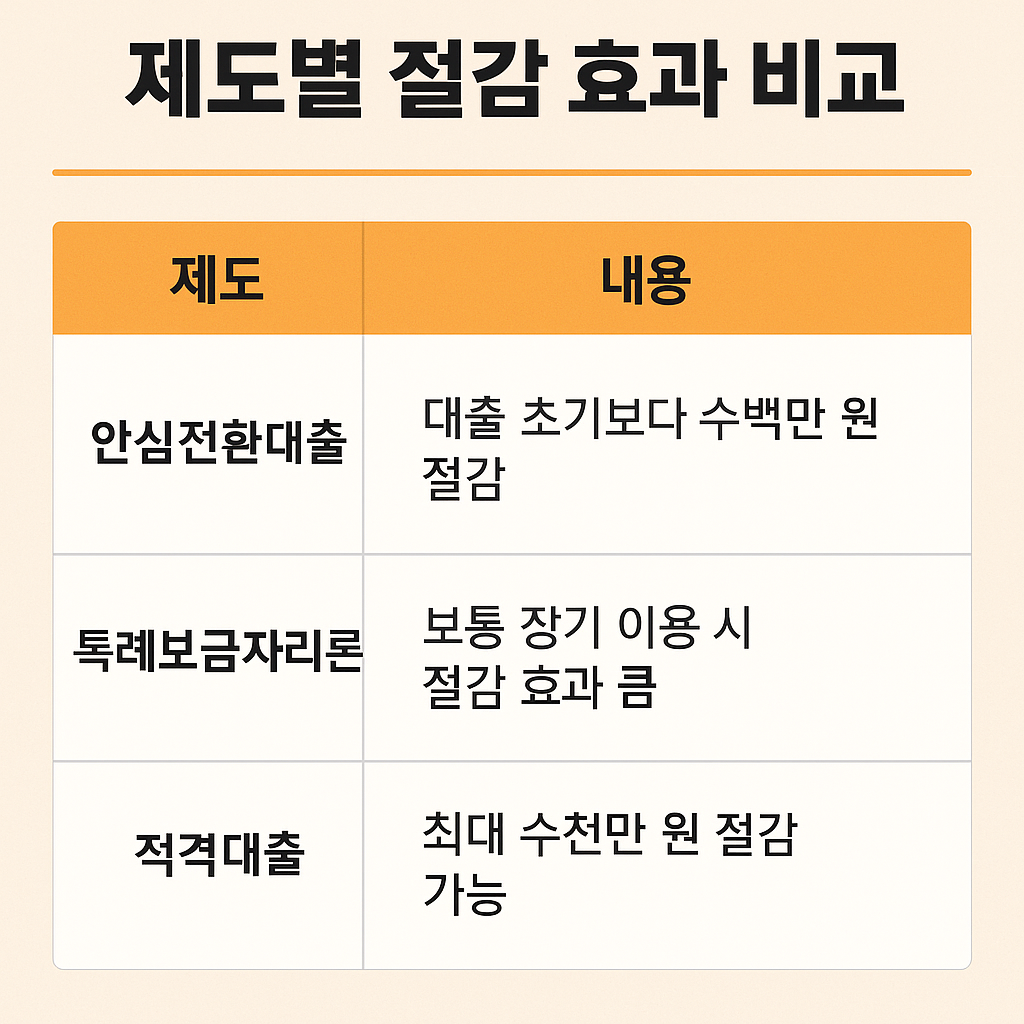 - 장기적 관점 필요: 당장의 금리 인하보다 장기 상환 계획에 맞는 제도를 선택해야 합니다.