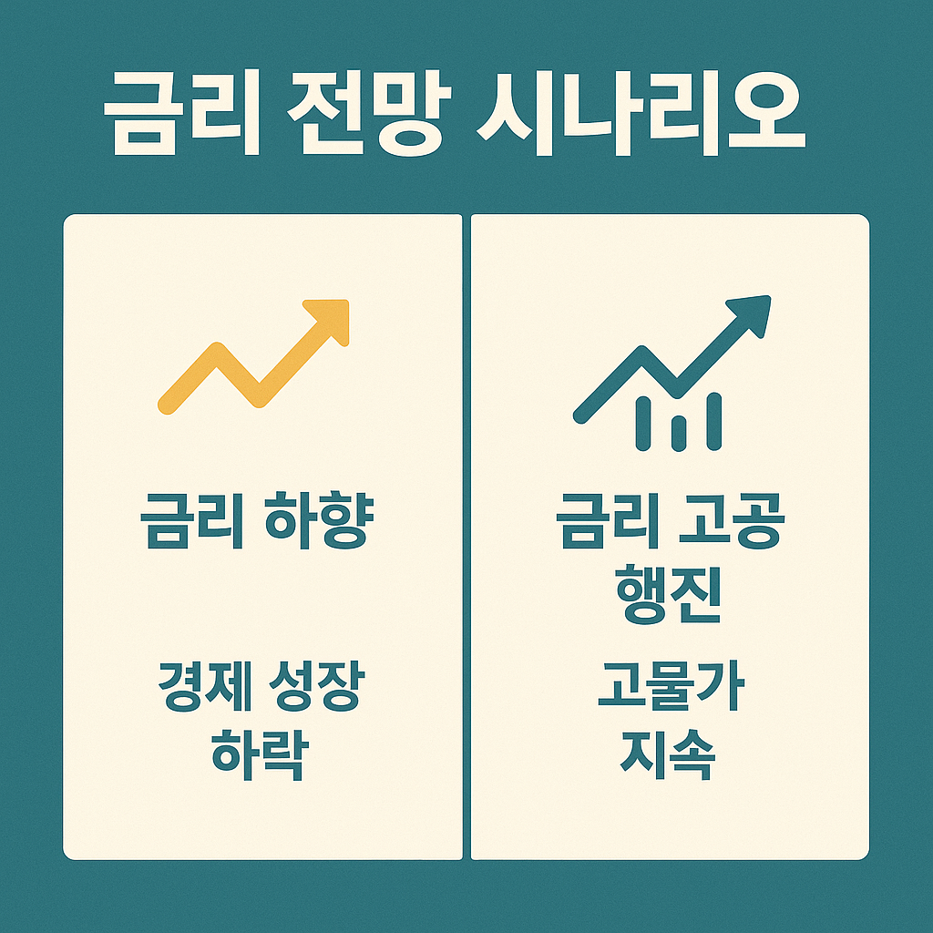 전문가들은 2025년 금리 흐름을 크게 세 가지 시나리오로 전망합니다.