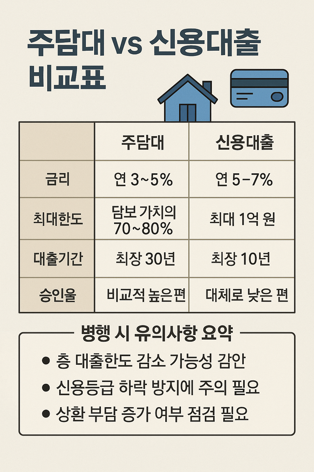 - 주담대+신용대출 병행 시 이자 부담 증가