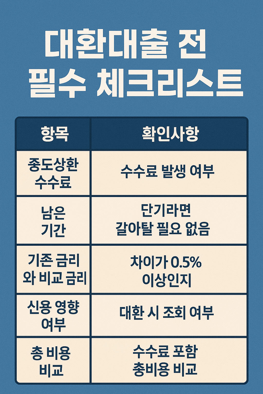- 수수료가 이자 절약보다 크다면 대환 효과 없음